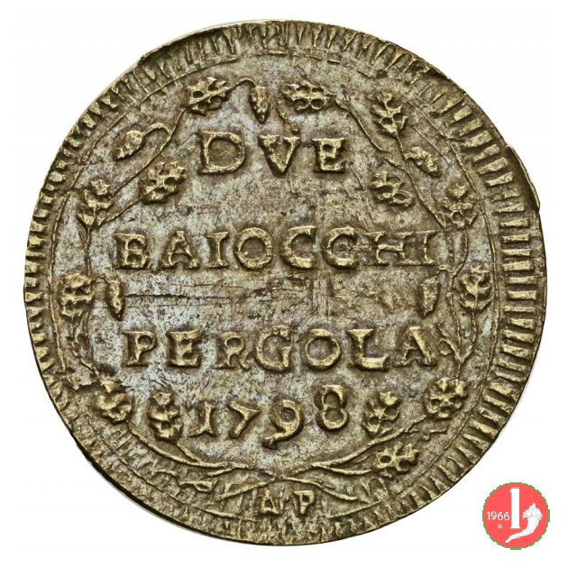 due baiocchi (1798) (1798 - Pergola) Varesi 50 - lotto 1334 Dritto | Numismatica Varesi | Sat 20/02/10 - 15:15 | ||