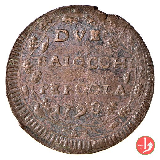 due baiocchi (1798) (1798 - Pergola) NAC 139 - lotto 403 Dritto | NAC Numismatica Ars Classica | Mon 4/12/23 - 21:43 | ||