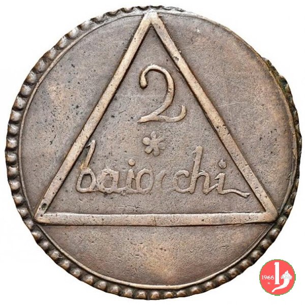 due baiocchi (con triangolo) (1799 - Perugia ?) Negrini 44 - lotto 1116 Dritto | Numismatica Negrini | Sat 8/09/18 - 11:00 | ||
