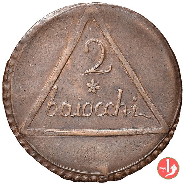 due baiocchi (con triangolo) (1799 - Perugia ?) Negrini 44 - lotto 1116 Verso | Numismatica Negrini | Sat 8/09/18 - 11:00 | ||