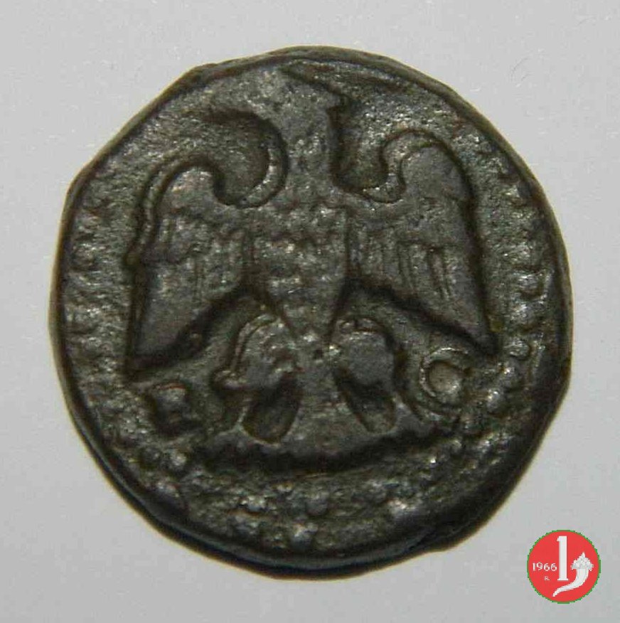 FREDERIC RE.X. Aquila con ali spiegate di fronte con testa rivolta a sinistra sul capo corona e da ciascun lato un crescente; sotto le ali due punti, entro un cerchio perlinato (D)