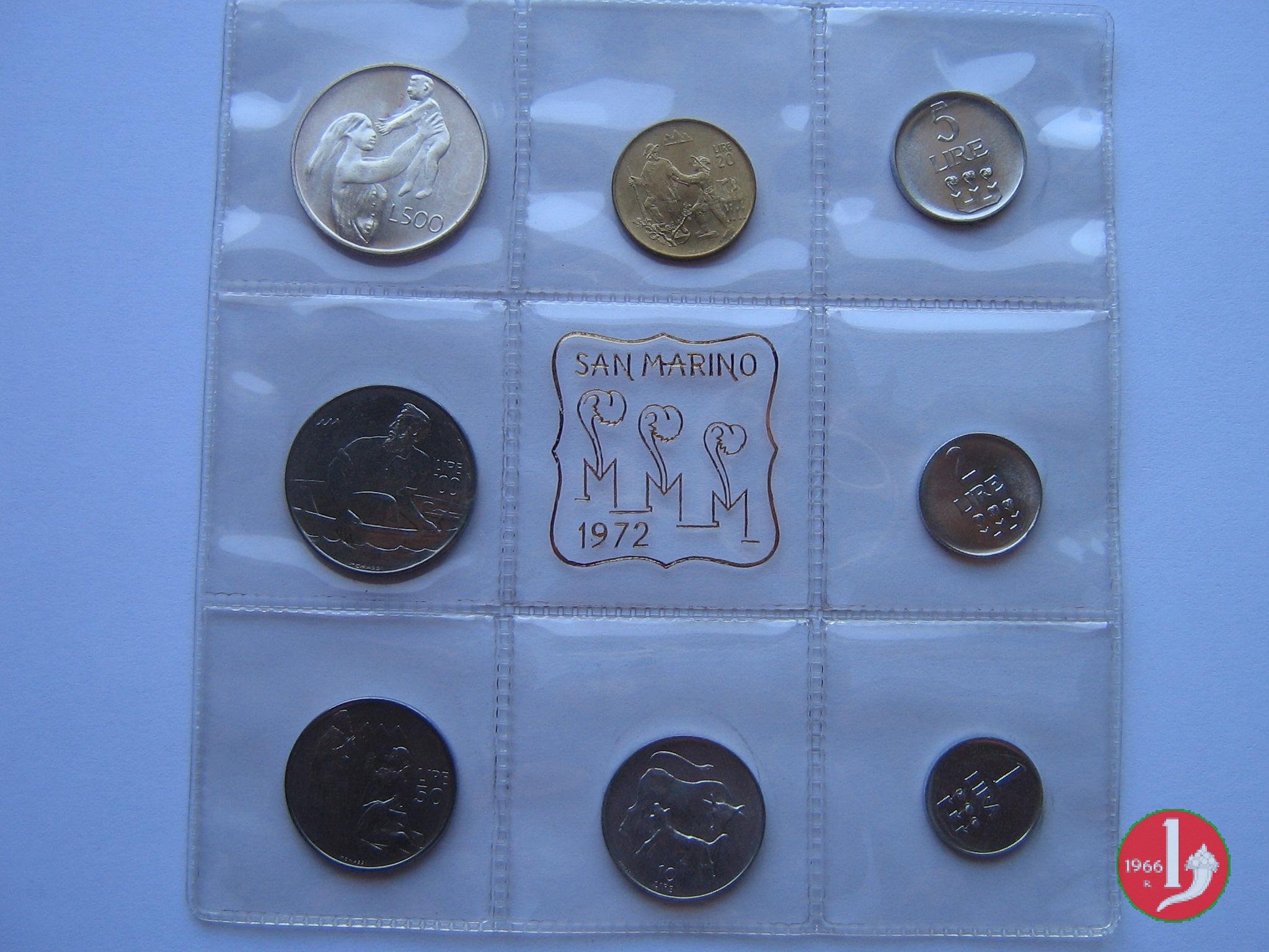 Serie divisionale 1972 (1972 - Roma) Serietta turistica ridotta (5 pezzi: 1,2,5,10,20 Lire) Prezzo emissione: Lire 1000 | Thu 24/12/15 - 15:53 | |||
