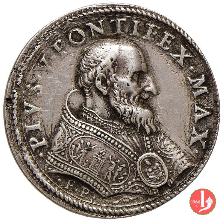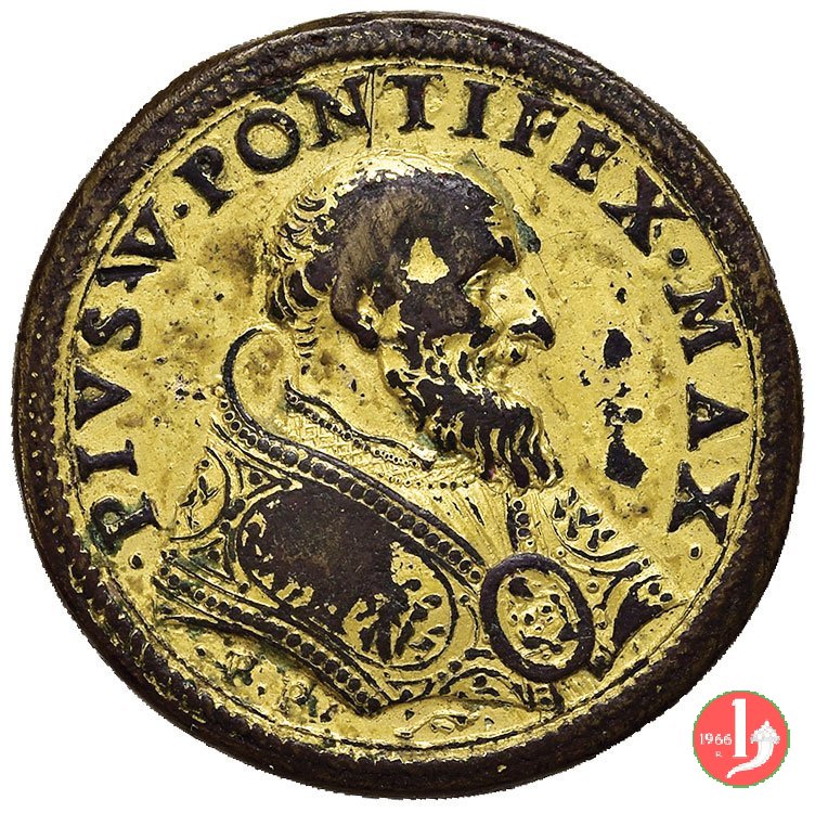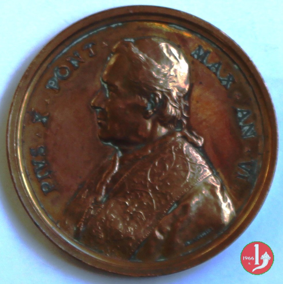 busto del Pontefice con zucchetto, mozzetta e stola rivolto verso destra – dietro la spalla: S J attorno ai lati: PIO X e PONT • MAX •