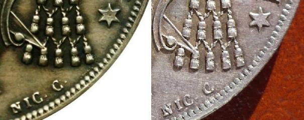 Scudo Romano (1846 - Roma) FALSO Confronto rose dello stemma falso (sx) ed originale (dx) Dettaglio | Wed 29/04/09 - 20:43 | |||