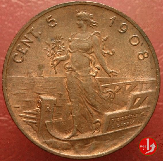 5 centesimi prora (1908 - Roma) FDC tracce di rosso (Numismatica Leonessa) | Sat 25/02/12 - 20:50 | ||