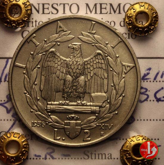 2 lire impero (1936 - Roma) 2 Lire IMPERO 1936 XIV - RARA / Nichelio FDC - Sigillo MEMOLI Verso | Sun 15/01/12 - 16:24 | ||