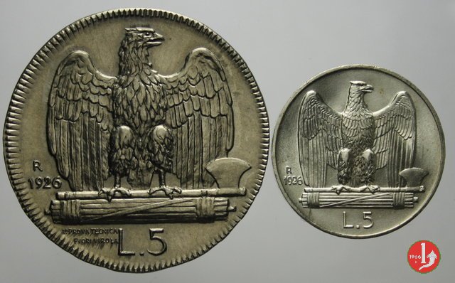 prova tecnica 5 lire (1926 - Roma) Confronto con il 5 Lire "Aquilino" effettivamente entrato poi in circolazione. | anonimo | Sun 23/09/12 - 19:10 | |