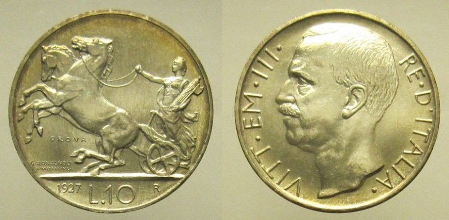 10 lire biga (1929) FALSO falso d'epoca Ø verticale: 27,05 mm Ø orizzontale: 27,05 mm spess. bordo:2,20 mm spess. centro:2,20 mm peso: 6,97 g Dritto | Sun 17/06/12 - 18:48 | ||