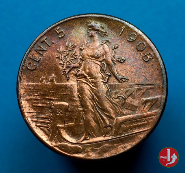 progetto 5 centesimi 1907 per dimensione in rame (1907 - Johnson) Dritto | Thu 14/01/10 - 23:30 | ||